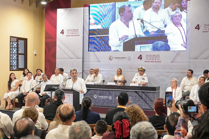 En una solemne Sesión Pública de Cabildo celebrada en el complejo cultural “Chantli, La Casa del Pueblo”, el presidente de Coatzacoalcos, Amado Cruz Malpica, rindió su cuarto y último Informe de Gobierno, haciendo un recuento de los logros de su administración y asegurando que “hoy estamos más cerca de la ciudad que queremos todos”.