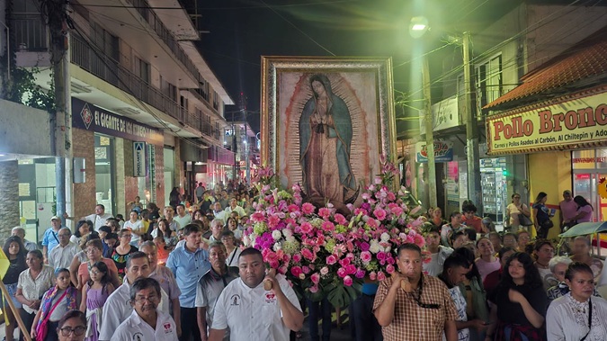 En el marco de las fiestas guadalupanas, este lunes 1 de diciembre se llevó a cabo una procesión de la virgen, que partió de la clínica San Juan, pasando por el centro de la ciudad hasta la parroquia San Juan Bautista.