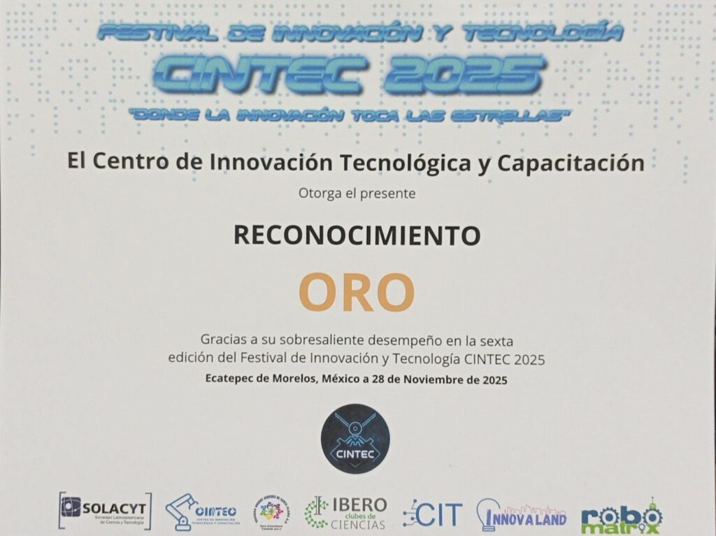 Estudiantes de Pedagogía de la Universidad de Sotavento obtuvieron medalla de oro en la etapa nacional del Festival de Innovación y Tecnología CINTEC 2025, conocido como Infomatrix, realizado este 28 de noviembre en Ecatepec de Morelos, Estado de México.