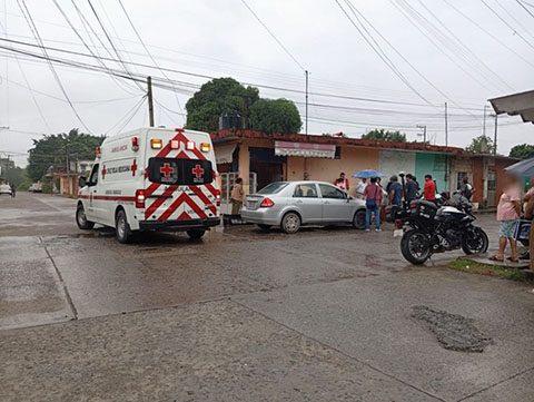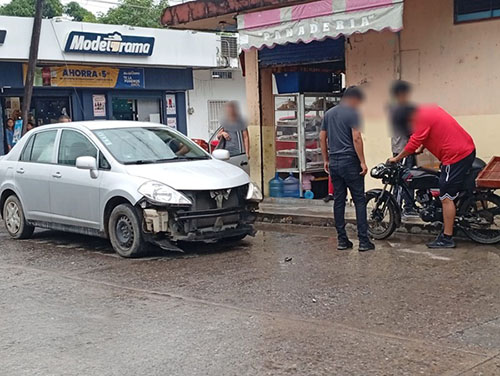 El joven repartidor de la panadería resultó con golpes contusos y su motocicleta quedó dañada de la parte frontal al igual que el automóvil Nissan.