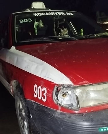 La otra unidad involucrada es un automóvil Nissan Tsuru, en su modalidad taxi y con placas de circulación A-504-XEN del estado y con número económico 903.
