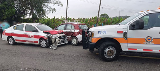 Se trata de un automóvil en su modalidad taxi con el número económico 126 del municipio de Tecolutla, la otra unidad involucrada es de la localidad de Ricardo Flores Magón y con número económico 57, del mismo municipio.