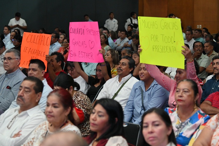 - “Hace cuatro años establecimos un compromiso ante nuestro presidente municipal, Amado Cruz Malpica, y ante el pueblo de Coatzacoalcos: luchar por la disminución de la pobreza y por el bienestar de cada familia en situación de vulnerabilidad”, expresó Esther Mortera Zetina.