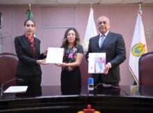 La presidenta de la Mesa Directiva, diputada Naomi Edith Gómez Santos, y el secretario de la Comisión de Procuración de Justicia, diputado Adrián Ávila Estrada, atestiguan este acto.