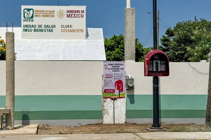 El dispositivo se encuentra sobre la calle Florentino Domínguez, a las afueras de la Unidad de Salud IMSS-Bienestar, y permite realizar y recibir llamadas gratuitas a cualquier punto de la República Mexicana, tanto a números fijos como móviles.