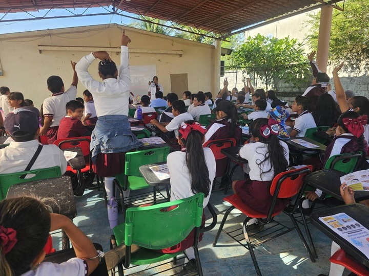 En la primaria Tomasa Valdez viuda de Alemán (turno vespertino), se fomentó un estilo de alimentación equilibrada. Esta información sobre los nutrientes necesarios para un mejor rendimiento académico y estado de ánimo también se compartió en la primaria Emiliano Zapata.