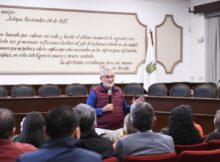 Durante el festejo navideño que se organiza anualmente en la explanada de la Unidad Central. El Rector, Dr. Martín Aguilar Sánchez reconoció la dedicación, ética y trabajo cotidiano