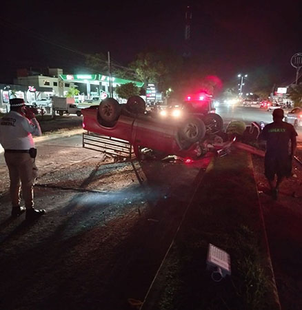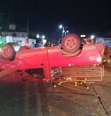 Su camioneta Chevrolet con placas de circulación YY-1157-A del estado, terminó volcada con las llantas hacia arriba y él logró salir por la ventanilla, tratando de correr, sin embargo fue intervenido metros adelante por elementos preventivos.