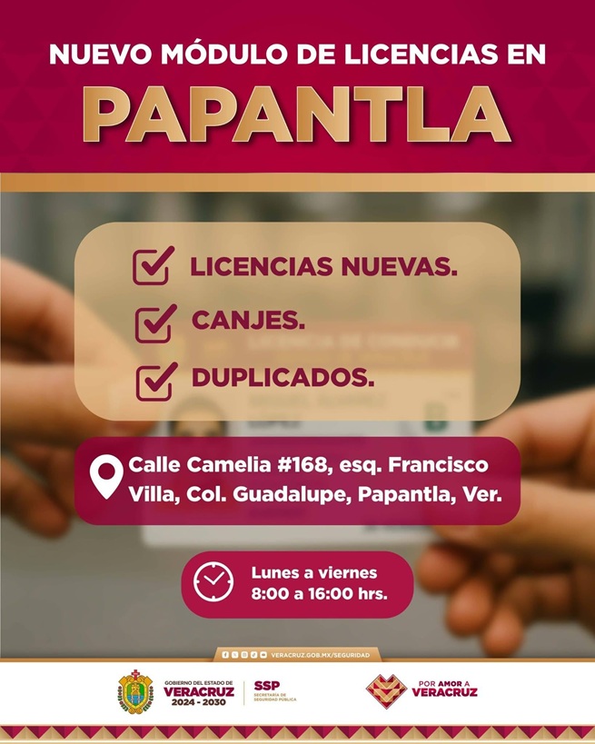 En un esfuerzo conjunto por acercar los servicios a la ciudadanía, el Gobierno del Estado de Veracruz, a través de la DGTE dirección General de Transporte en el estado adscrita a la secretaria de seguridad publica SSP, en coordinación con la Delegación de Transporte Estatal este día realizaran  la apertura permanente del módulo de licencias.
