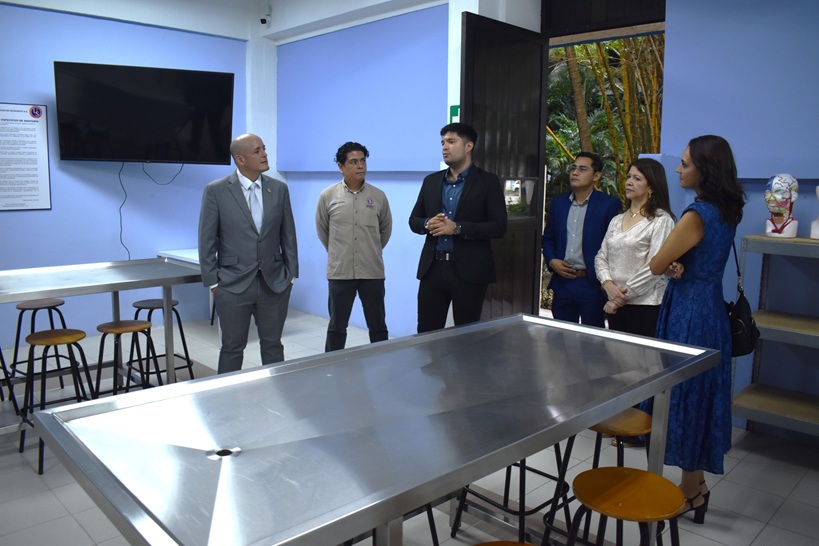 Durante la visita conoció los laboratorios de Enfermería, Medicina, la Sala de Juicios Orales, las áreas de Fisioterapia, el aula de Realidad Virtual, además de los espacios destinados a Taekwondo y Judo, en un recorrido general que le permitió apreciar de cerca la infraestructura académica que caracteriza a la universidad.