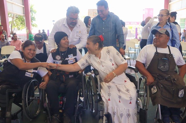 El trabajo interinstitucional también fue clave. En coordinación con el DIF Estatal y el Patrimonio de la Beneficencia Pública del Estado de Veracruz, se entregaron 1,391 aparatos funcionales y de movilidad, entre ellos sillas de ruedas, bastones de uno y cuatro puntos, andaderas, bastones tipo alemán, así como sillas PCI y PCA.