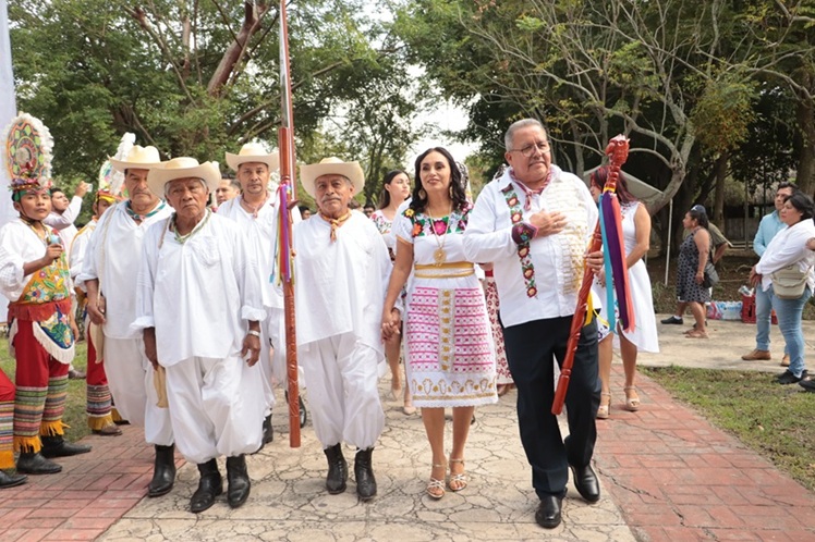 Antes de su rendición de cuentas Pino Guevara pasó a recibir la bendición de los sabios totonacas en el Kantillan.