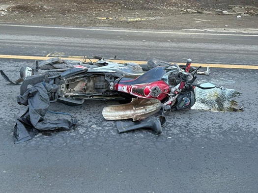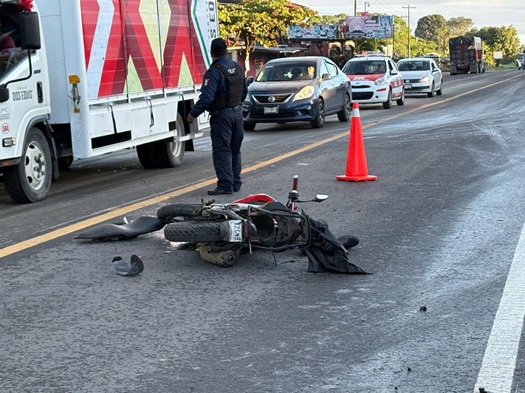 La motocicleta quedó destrozada sobre la cinta asfáltica, de la marca Italika y con placas de circulación X2GN8 del estado.