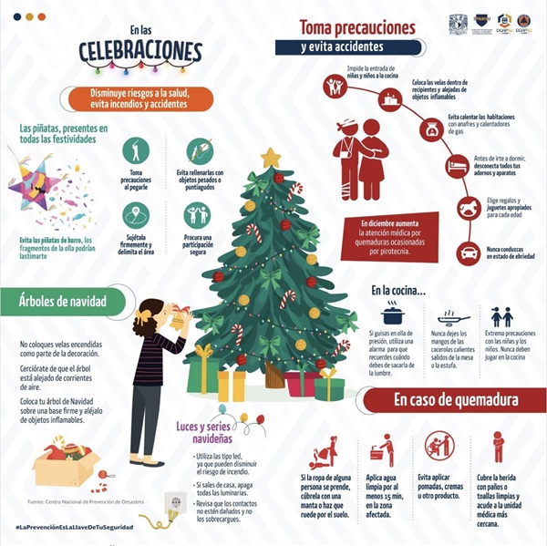 La Universidad Nacional Autónoma de México (UNAM) advirtió sobre los riesgos más comunes durante diciembre en fiestas decembrinas, las más comunes van de quemaduras hasta accidentes en el hogar.