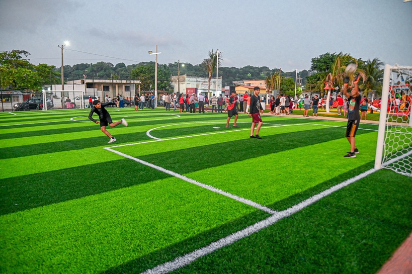 La obra que beneficia a más de 15 mil habitantes de la colonia Progreso y Paz tuvo una inversión de 6 millones 865 mil 866 pesos, provenientes del FAISMUN 2025, y comprendió la rehabilitación de la cancha con pasto sintético, suministro y colocación de reja perimetral, instalación de juegos infantiles y ejercitadores.
