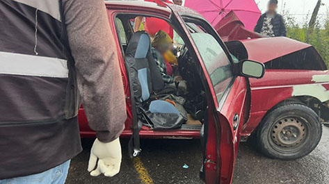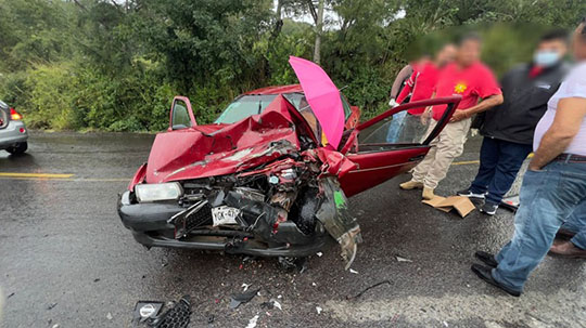 En este accidente se ve involucrado un automóvil Nissan Tsuru con placa de circulación YGK -478-A del estado, unidad que quedó destrozada de la parte frontal y su conductor perdió la vida debido a sus lesiones graves.