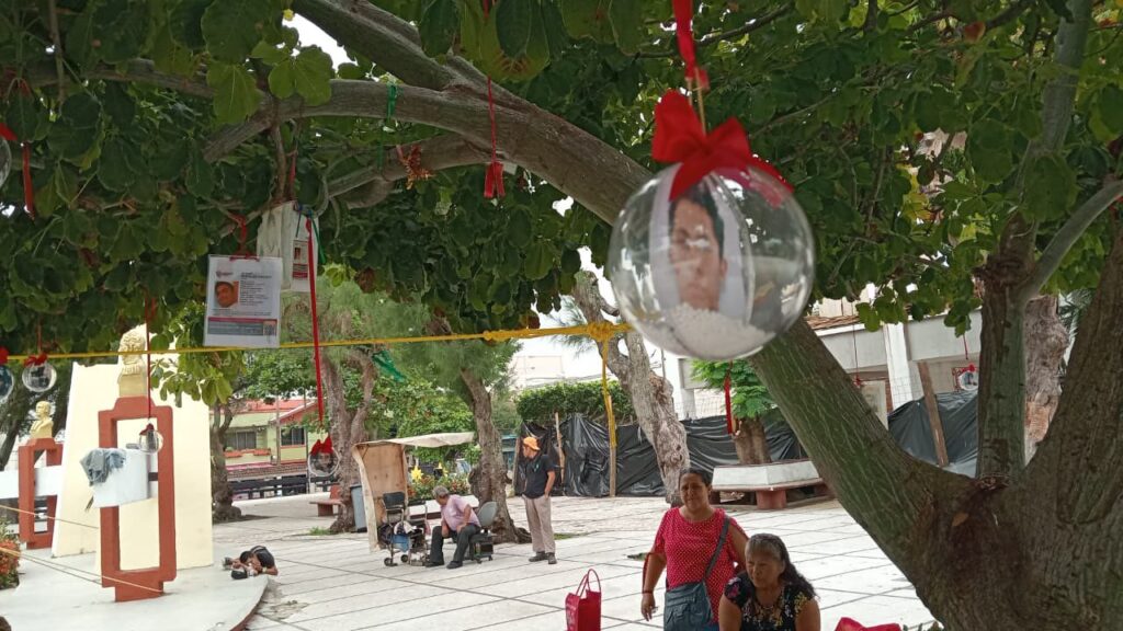 Como un acto de amor, memoria y resistencia; este lunes, integrantes del Colectivo Madres Buscadoras de Coatzacoalcos colocaron esferas con las fotografías de sus familiares desaparecidos en un árbol instalado en el parque Independencia de esta ciudad y puerto.