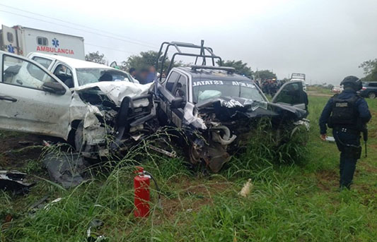 JUAN RODRÍGUEZ CLARA, Ver.- Un violento accidente automovilístico se registró la tarde de este martes en la carretera Juan Rodríguez Clara–Isla, donde una patrulla de la Secretaría de Seguridad Pública del Estado, una camioneta particular y un taxi colisionaron, dejando un saldo de una persona fallecida y cinco heridos, entre ellos tres elementos policiacos.