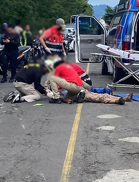 El accidente ocurrió la tarde de este martes, justo a la desviación a la colonia Teodoro Adehesa, por dónde el motociclista al perder el control de su caballo de acero termina por derrapar sobre la cinta asfáltica.