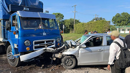 Choque entre un camión y un automóvil