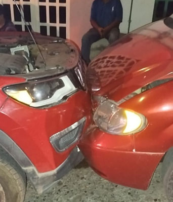 El accidente ocurrió la tarde noche de este viernes, justo en la prolongación Miguel Hidalgo, frente a la colonia Emiliano Zapata, por dónde un taxi con número económico 580 del sitio satélite taxi, con placas de circulación A-186-XFF del estado, presumiblemente libró los hoyos de la calle y no le dio tiempo regresar a su carril y terminó por estrellarse detrás de una camioneta Jeep.