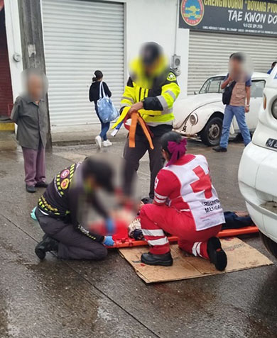 Fueron paramédicos de Protección Civil quiénes le brindaron la atención prehospitalaria a la víctima y dos técnicos en urgencias médicas de la Cruz Roja Mexicana, coordinaron con ellos para darle los primeros auxilios.