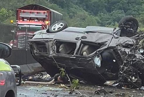 - Un violento choque contra el muro de contención terminó con la vida de ambos pasajeros, luego de que la unidad quedara completamente destrozada en el kilómetro 17