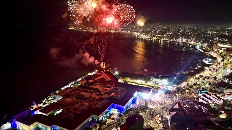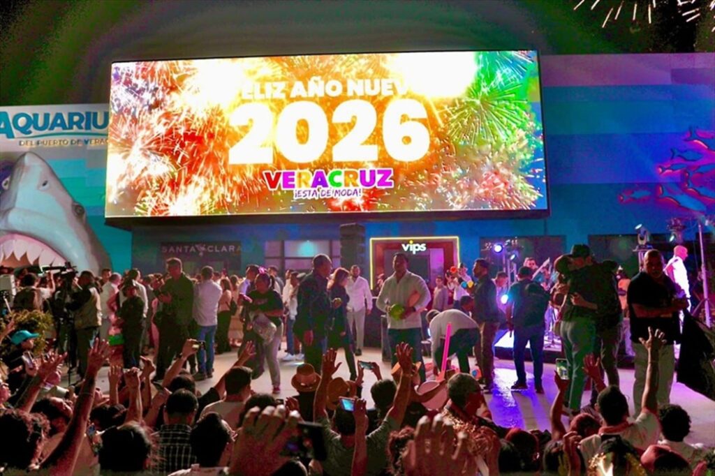 Miles de veracruzanas y veracruzanos, así como visitantes nacionales y extranjeros, dieron la bienvenida al 2026 en la explanada del Aquarium del Puerto de Veracruz y en sus pantallas exteriores, donde se realizó el tradicional conteo regresivo hasta las 00:00 horas, seguido de un espectáculo de luces que iluminó el cielo, en un ambiente de alegría, convivencia y sano esparcimiento familiar.