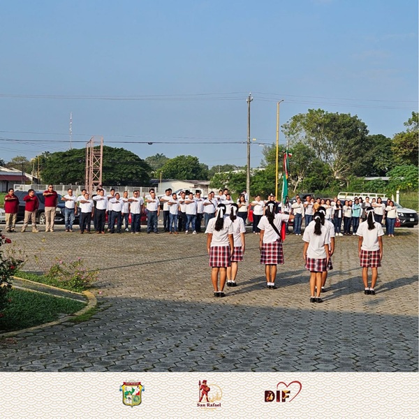 Con orgullo y respeto el Ayuntamiento de San Rafael llevó a cabo los Honores a la Bandera y así será el primer lunes de cada mes, con la participación de todo el personal municipal.