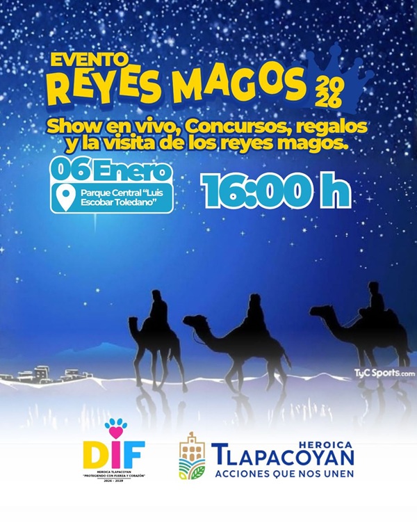 El DIF Municipal, invita a las familias tlapacoyenses a asistir al Evento de Reyes Magos 2026, una celebración dedicada a las niñas y los niños del municipio.