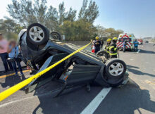 VERACRUZ, Ver.– La tarde de este jueves 8 de enero se registró una aparatosa volcadura sobre la carretera Veracruz–Cardel, a la altura de la colonia Renacimiento, que dejó