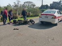 San Rafael, Ver. Tremendo susto se llevó un motociclista, ha de estrellar su caballo de acero contra un auto de renta. Lo anterior ocurrió la mañana de este