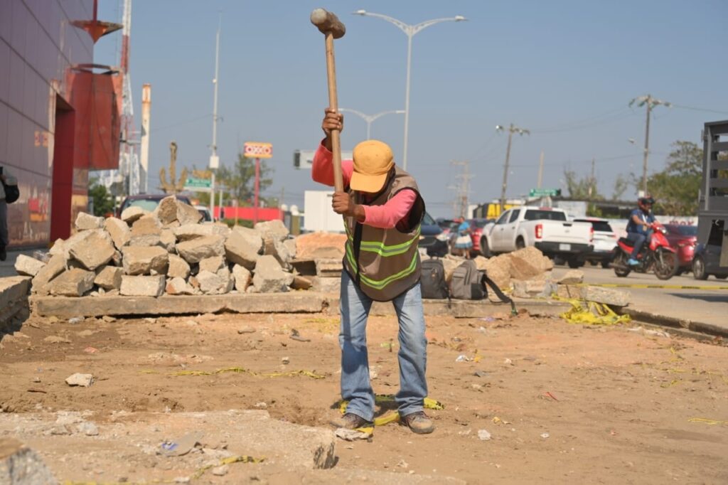 Las acciones están a cargo de personal de Infraestructura Urbana, adscrito a la Dirección de Servicios Municipales, quienes llevan a cabo la demolición de pavimento, retiro de escombros, excavación a mano y colocación de concreto.