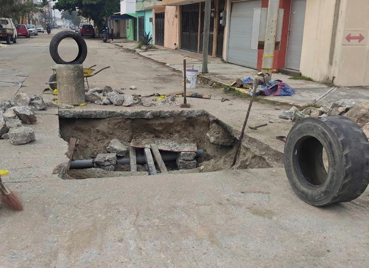 Asimismo, se desarrollan trabajos en la avenida Ignacio Zaragoza, en la colonia Manuel Ávila Camacho, luego de que la Comisión Municipal de Agua Potable y Saneamiento (CMAS) reparara una línea de suministro de agua en ese punto.