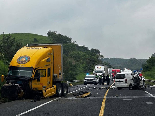 • Un camión de carga se estrelló contra una camioneta particular, dejando a dos personas sin vida y a un lesionado grave; la vialidad quedó paralizada por horas