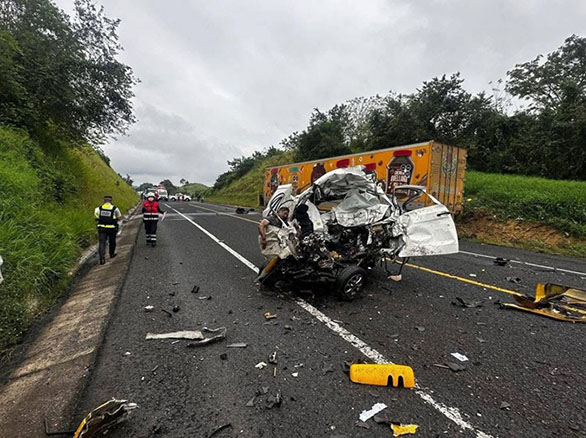 De acuerdo con las primeras indagatorias, un camión de carga presuntamente circulaba a exceso de velocidad cuando se impactó contra una camioneta blanca, la cual terminó completamente destrozada. En su interior quedaron dos ocupantes prensados, quienes perdieron la vida de manera instantánea.