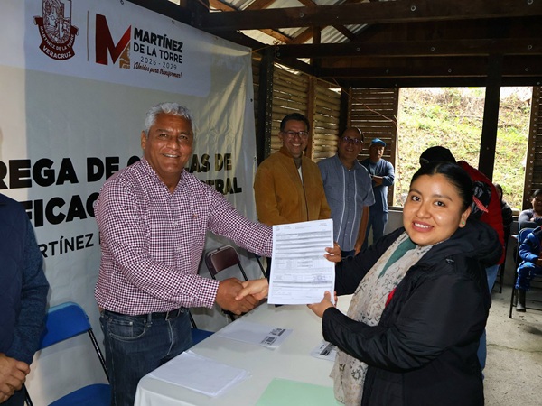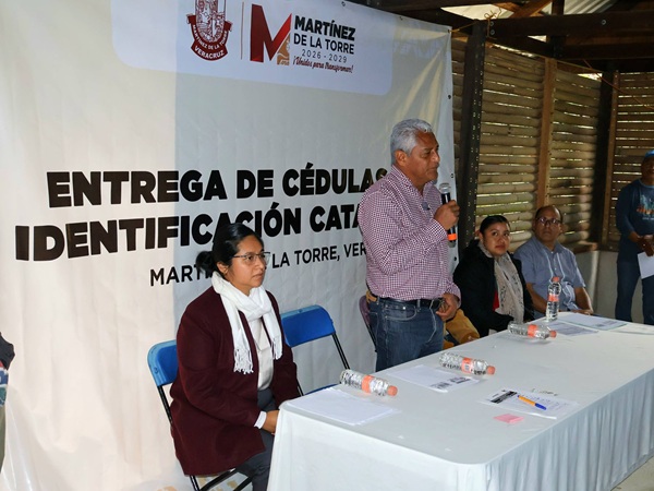 Como parte de las acciones para fortalecer el ordenamiento territorial y acercar los servicios municipales a las comunidades, el H. Ayuntamiento de Martínez de la Torre llevó a cabo, el pasado martes 13 de enero, la entrega de Cédulas de Identificación Catastral a vecinos de la Colonia Japonesa, ubicada en la comunidad de Arroyo Negro.