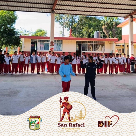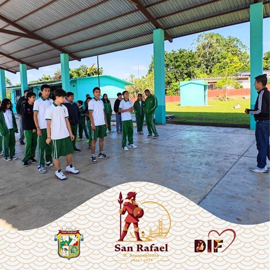 Con la dirección de Deportes estamos realizando activaciones físicas, pláticas sobre los beneficios del ejercicio y ejercicios de acondicionamiento físico en las escuelas secundarias del municipio.