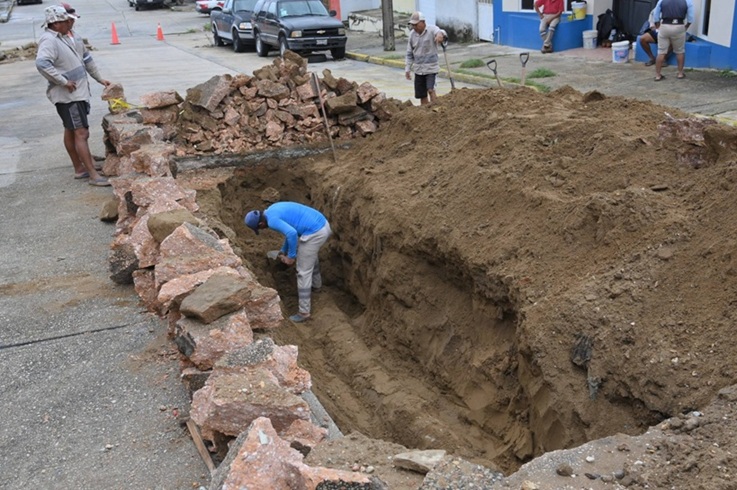 Personal de la Dirección de Obras Públicas, a través del área de Infraestructura Urbana, realiza trabajos integrales de rehabilitación de vialidades, atendiendo el drenaje sanitario que, debido al paso de los años colapsa y provoca socavones, representando un riesgo para la población.
