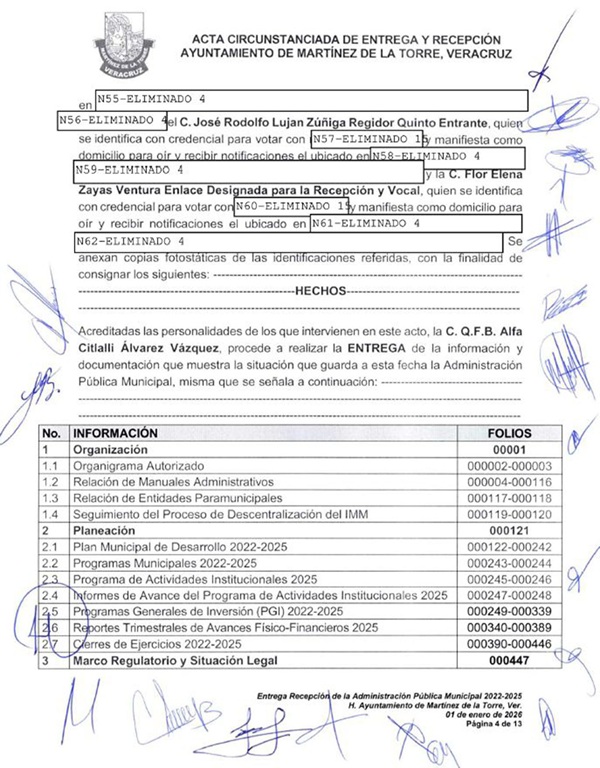 H. Ayuntamiento de Martínez de la Torre pone a disposición de la ciudadanía el Acta Circunstanciada de la Entrega–Recepción 2022–2025