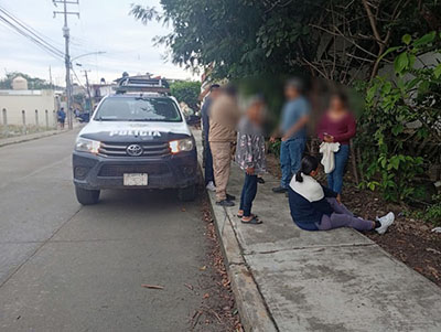 El accidente ocurrió a las 09:15 horas, cuando una femenina se encontraba esperando el microbús, estando parada en la banqueta y al ver que una motocicleta se subía, trató de esquivarla, pero fue imposible y recibió un golpe en pierna y cadera.