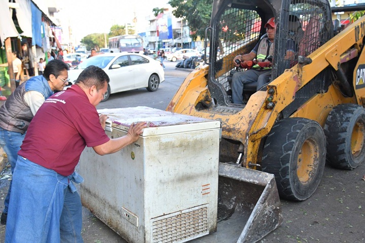 El locatario Apolinar García Espinoza reconoció el trabajo del alcalde Pedro Miguel Rosaldo García y del Ayuntamiento: “Qué bueno que están apoyando en sacar mucha basura, poner vigilancia y para eso estamos aquí, para ayudar en lo que se pueda”, expresó.