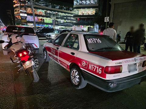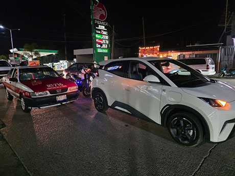 Se trata de un automóvil Nissan Tsuru en su modalidad taxi y con número económico 716, con placas de circulación A-317-XEN del estado, unidad que presentó daños mínimos en su costado izquierdo de la parte frontal.