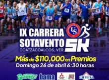 La IX Carrera Sotavento 2026, de 5 kilómetros, se realizará el domingo 26 de abril a las 6:30 horas. Gráfico de Coatzacoalcos Coatzacoalcos La Universidad De Sotavento (US)