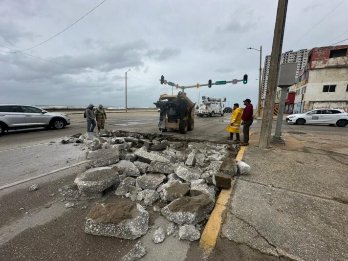Una de las acciones más visibles es la rehabilitación de la carpeta de rodamiento del malecón costero, desde la avenida Álamo hasta el Hemiciclo a los Niños Héroes, a la altura de Venustiano Carranza, una zona estratégica tanto para la actividad turística como para la movilidad urbana.