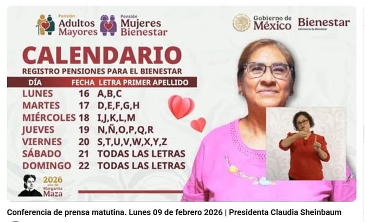 La presidenta de la república Claudia Sheinbaum anunció este lunes, el inicio de incorporación a los programas Mujeres Bienestar Pensión para el Bienestar de los Adultos Mayores, del 16 al 22 de febrero.