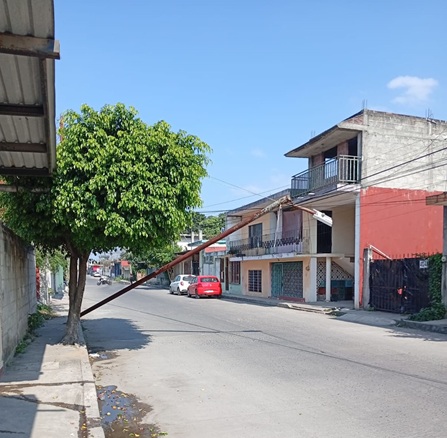 El hecho ocurrió en la avenida 2 de Octubre y Lucio Blanco, de la colonia Ejidal, por dónde el poste del alumbrado público se cayó y quedó colgado en los cables de Telmex.