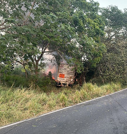 Lo anterior ocurrió sobre la carretera federal 180, Cardel – Nautla, por dónde un tráiler se salió de la carretera y entre la maleza comenzó a arder.