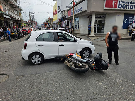 Motociclista rebotó en la portezuela de un automóvil, luego de que este presumiblemente se le atravesó en la avenida y de esta forma se registró la coalición.