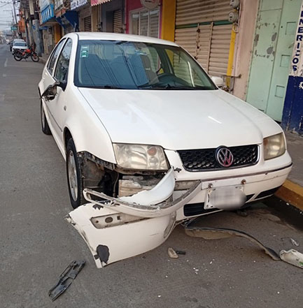Destrozado del costado derecho de la parte frontal, además de un espejo lateral, registró daños materiales, un Jetta que se encontraba estacionado sobre la avenida.